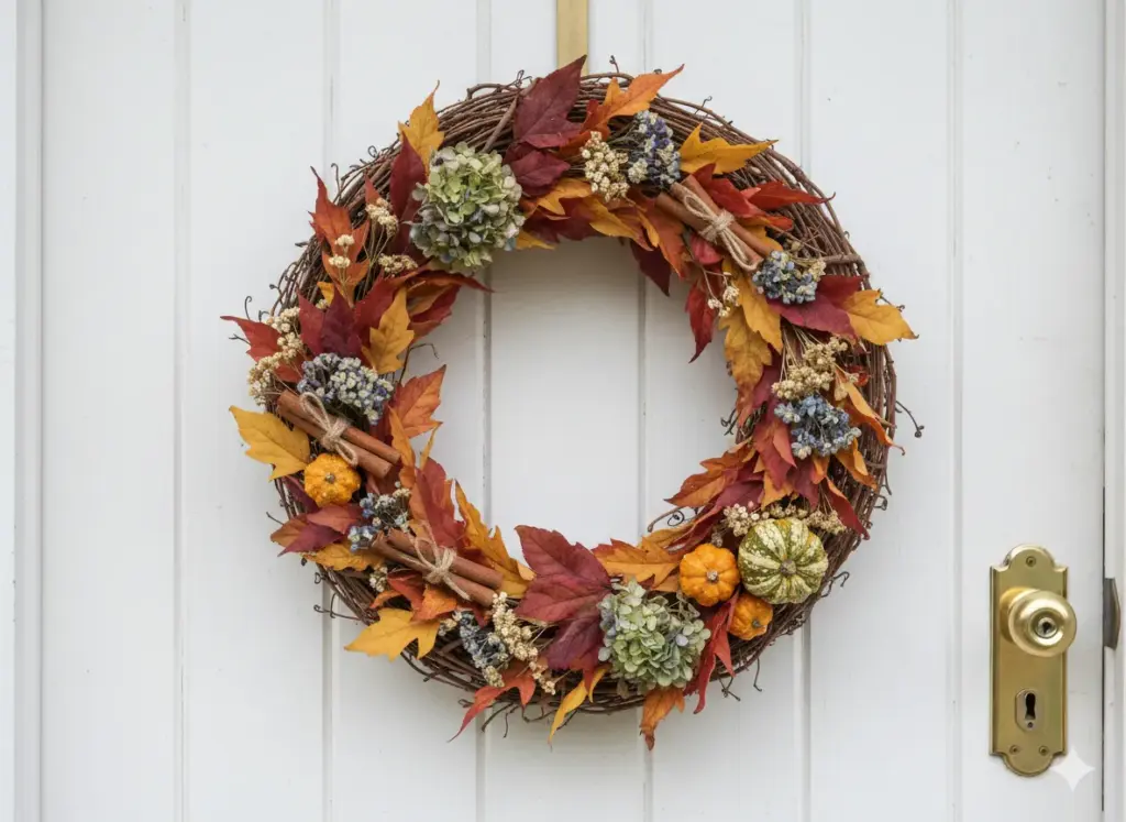 For wreaths, I’ve completely abandoned those foam bases. Instead, I make grapevine wreaths from scratch—which sounds intimidating but is actually pretty forgiving. You can usually find grapevines at craft stores, or if you’re lucky enough to know someone with grape plants, they’re often happy to give you trimmings. You just wrap and weave the vines into a circle, tucking the ends in as you go. Then I hot glue (with a low-temp glue gun to avoid burns—learned that lesson) whatever natural elements I have: preserved fall leaves, dried flowers, cinnamon sticks, or small gourds.