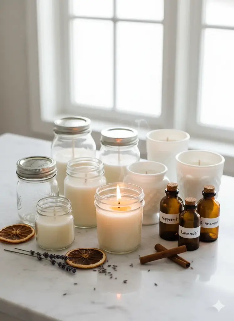 Soy candles work similarly but take scent better if you want to add essential oils. I make peppermint candles for Christmas (about 20-30 drops of essential oil per cup of melted wax), lavender for Easter, and pumpkin spice for Thanksgiving. The key is adding the essential oils after the wax has melted and cooled slightly—if it’s too hot, the scent evaporates.