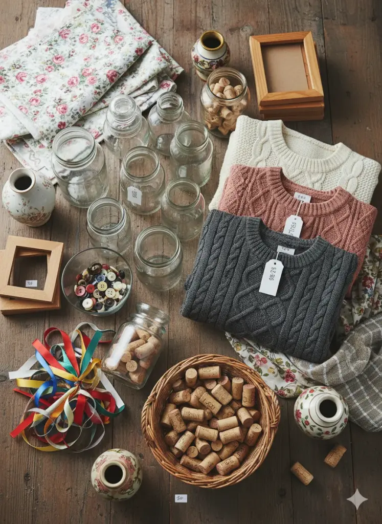 Thrift stores are absolute goldmines for sustainable crafters. I’ve found vintage fabric, old sweaters, glass jars, ceramic containers, picture frames (I remove the glass and use the frames for everything), baskets, and so much more. My local Goodwill knows me by name at this point. Shopping secondhand keeps these items out of landfills and costs a fraction of buying new.