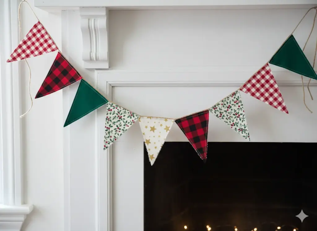 Fabric scraps also make beautiful bunting and garlands for any holiday. I cut triangles (they don’t have to be perfect—wonky adds character), fold the top edge over a length of twine or ribbon, and either sew or glue them in place. For Valentine’s Day, I use reds and pinks. For Easter, pastels. For Fourth of July, anything with stars and stripes. The same basic technique works for every holiday, and nothing goes to waste.